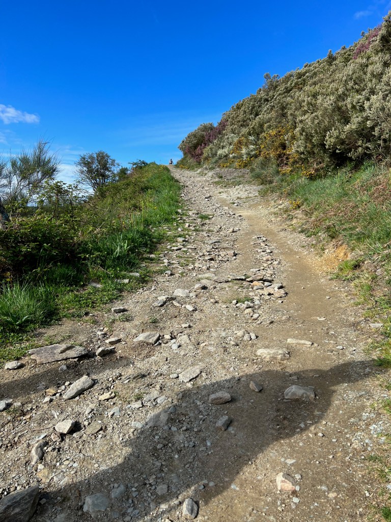 (There is however an unbelievably steep and rocky straight-down descent after a place called Puerto del Palo.) The challenge is more a lack of services of any kind for 27 km, that is, not even water or a restroom. So it is best to be really ready when setting out in the early morning hours. ( There is an alternative route which passes through a town called Pola de Allande. )