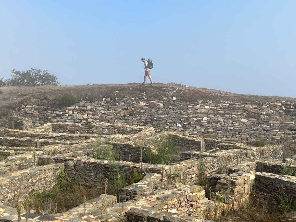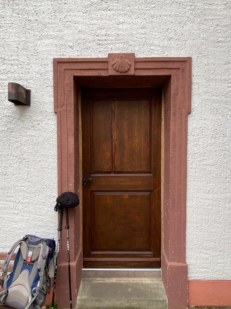 We did not end up seeing any of that however. Just as we approached the top of the hill, a driving rain started coming down. As it happened, the path continued up to a particularly exposed area, as the rain turned into hail. Looking around for any kind of shelter, we spotted a small structure to the right. This turned out to be a chapel, which already had several pilgrims standing under the narrow eaves. The chapel was locked, and as the storm intensified, we got colder and colder standing there. As the wind picked up, and more people arrived, it became more difficult for everyone to take shelter. A Spanish pilgrim noticed that the wooden bars of one chapel window had been broken into some time ago. She clambered through the window, and we all eventually followed, taking care not to impale ourselves on the jagged pieces of the wooden bars. A German pilgrim arrived, took a wry look inside and commented “I have never seen a church so full!” Some pilgrims had no rain gear at all, and were at definite risk of hypothermia, but some spare clothing was lent to them by other pilgrims.